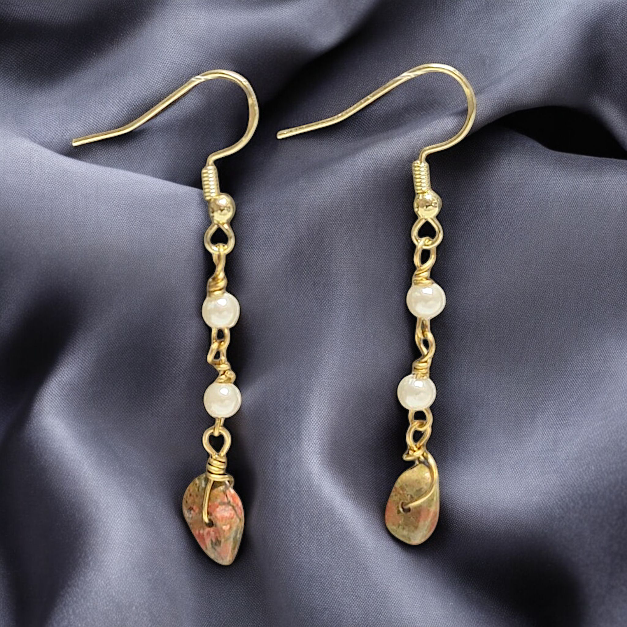Earring hooks are available in gold-finished/silver-plated copper (regular) or sterling silver.